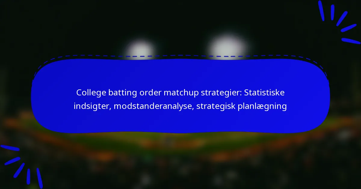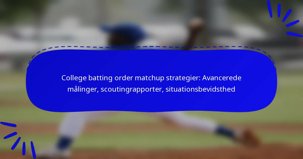 I college baseball er det afgørende at udvikle en effektiv batting order for at maksimere scoringspotentialet og den samlede holdpræstation. Ved at udnytte avancerede målinger som on-base percentage og slugging percentage kan trænere strategisk optimere lineups. Derudover giver scoutingrapporter værdifuld indsigt i spiller-matchups, mens situationsforståelse muliggør realtidsjusteringer baseret på spillets dynamik. Sammen danner disse elementer en omfattende tilgang til at forbedre offensiv effektivitet. Key sections in the article: Toggle Hvad er de vigtigste avancerede målinger for college batting order strategier?…