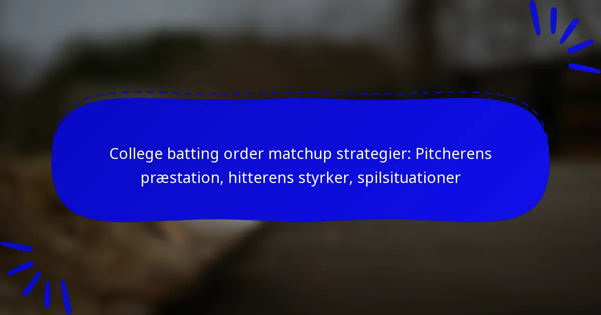 I college baseball kræver det at skabe en effektiv batting order en dyb forståelse af pitcherens præstation og hitterens styrker. Ved at analysere nøglestatistikker og situationsfaktorer kan trænere optimere deres lineup for at forbedre scoringsmulighederne og tilpasse sig forskellige spilsituationer. Denne strategiske tilgang maksimerer ikke kun holdets præstation, men øger også sandsynligheden for succes på banen. Key sections in the article: Toggle Hvad er de vigtigste faktorer i analysen af pitcherens præstation? Forståelse af pitcherstatistikker ERA, WHIP og strikeouts Evaluering…