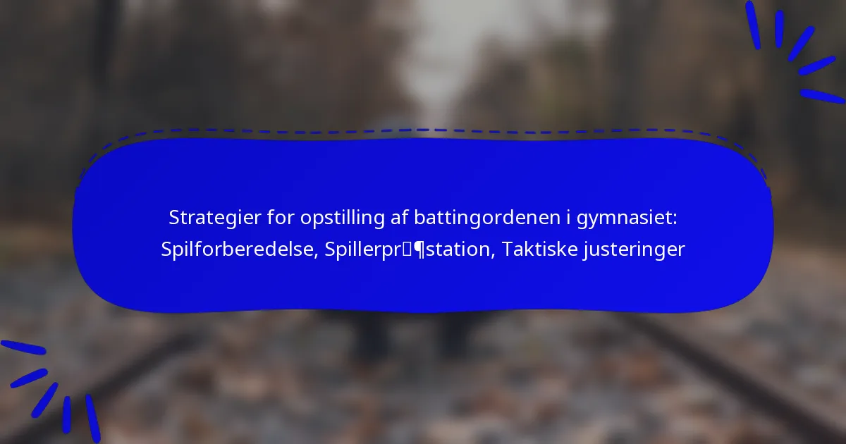 Strategier for battingordenen i gymnasiet er essentielle for at maksimere det offensive potentiale ved at optimere spiller-matchups og tilpasse sig forskellige spilsituationer. Trænere skal være fleksible og foretage justeringer i realtid baseret på spillerpræstationer og modstanderens pitcher-taktikker for at forbedre holdets succes. At forstå spillerdynamik og situationsbestemt hitting bidrager yderligere til effektive lineup-strategier, der i sidste ende har til formål at maksimere scoringsmulighederne. Key sections in the article: Toggle Hvad er de vigtigste komponenter i strategier for battingordenen i gymnasiet?…