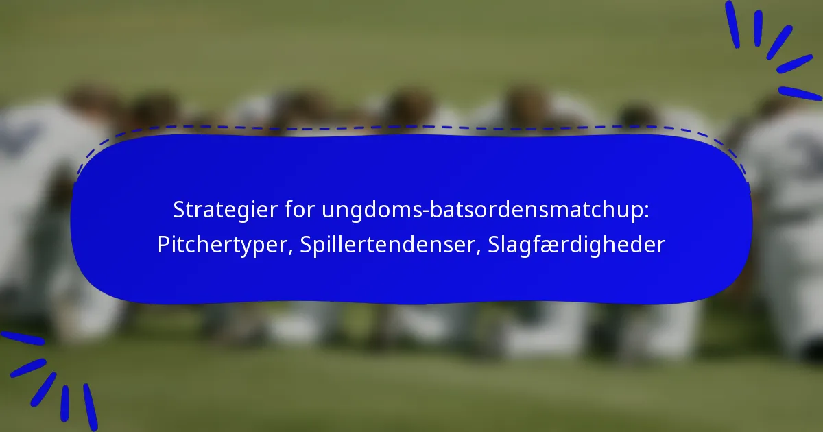 Strategier for ungdoms batting order matchup afhænger af at forstå pitcher-typer, spiller-tendenser og batting-færdigheder for at optimere scoringspotentialet. Ved at analysere disse elementer kan trænere skabe opstillinger, der udnytter modstandernes svagheder, samtidig med at de maksimerer deres holds styrker. Forskellige pitcher-typer påvirker i høj grad batting-strategier, hvilket præsenterer unikke udfordringer og muligheder, som holdene skal navigere for bedre præstation. Key sections in the article: Toggle Hvad er de vigtigste faktorer i strategier for ungdoms batting order matchup? Forståelse af pitcher-typer…